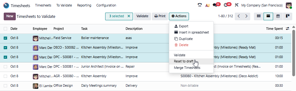 In Odoo, validated timesheets are locked to maintain data integrity and can’t be edited by employees. However, managers or administrators can reset them to draft, edit directly, or allow corrections through adjustment entries. Standard users can’t invalidate validated timesheets unless permissions or configurations are adjusted.