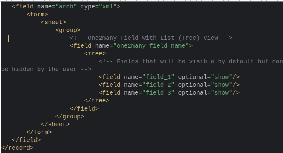 This is useful when you want some fields to be shown by default but give the user the flexibility to hide them if they don't need to see them all the time. Fields that are defined with optional="show" will be visible by default, but the user can choose to hide them by customizing the view.