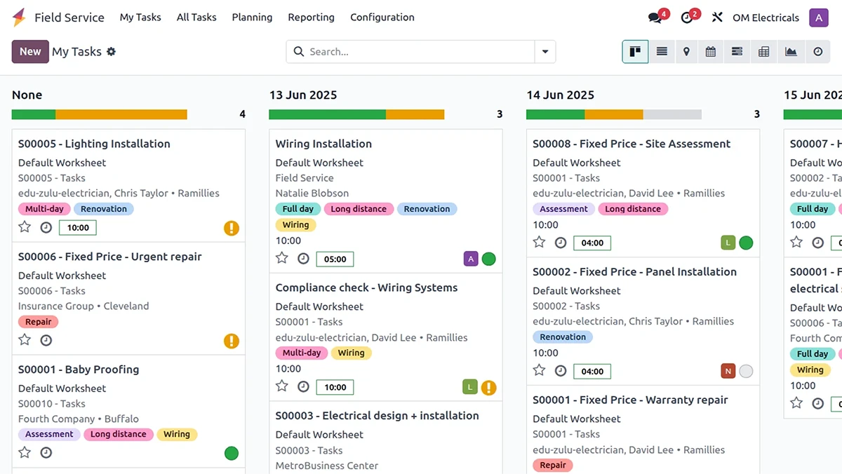 Odoo does it all, from scheduling appointments, logging timesheets, and completing worksheets to creating professional invoices and managing customer relationships with CRM.