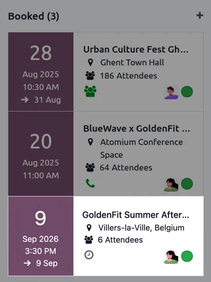 Manage tasks related to each event, and keep track of time spent, costs, and revenues.