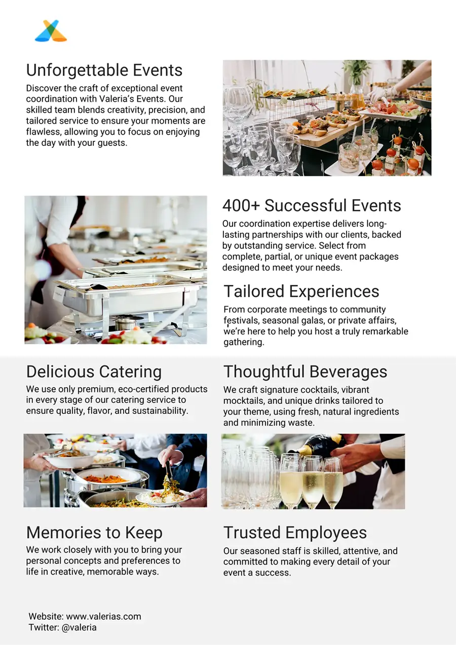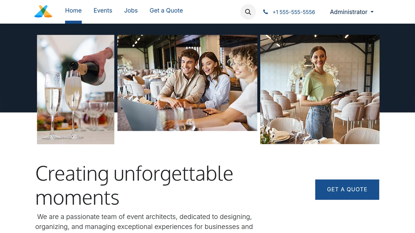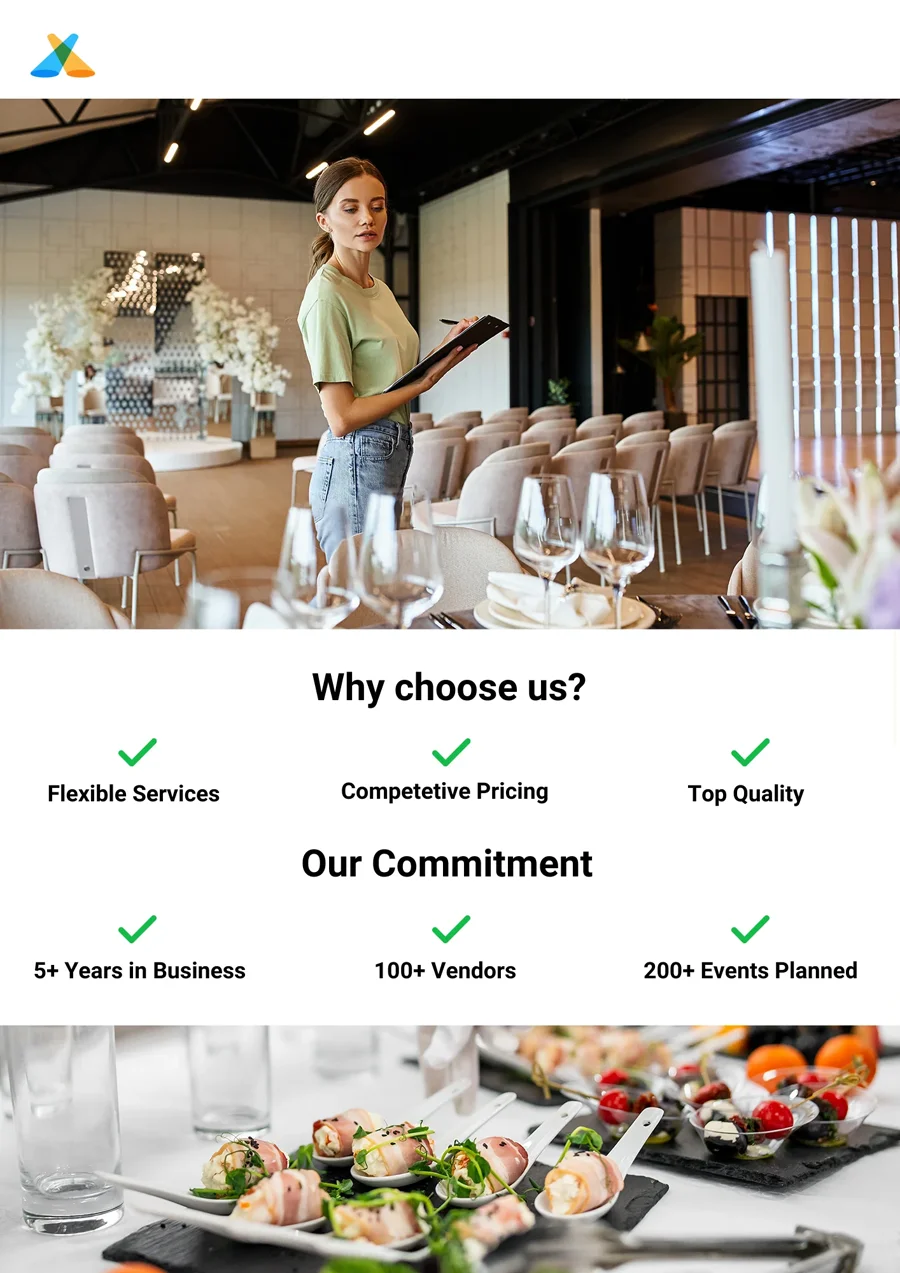 Use templates to add showstopping pages that gather leads for you. Clients can view past and upcoming events, request quotes, and understand your vision at a glance.
