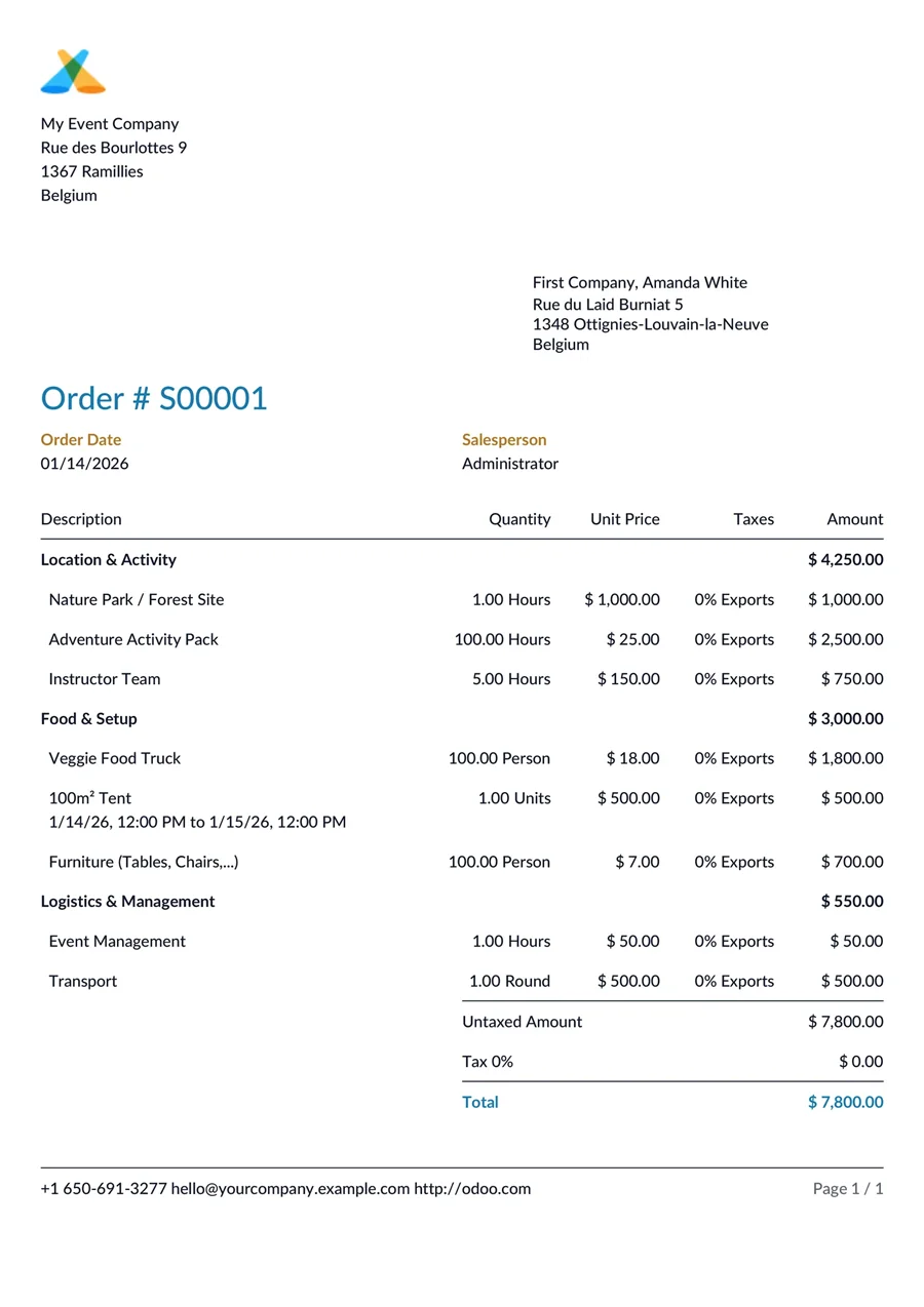 Manage equipment such as sound systems, lighting, and party tents with Odoo's rental features.