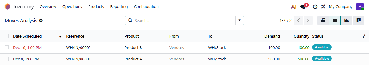 The only thing I'm struggling with is finding where to get list of all products with scheduled delivery dates. Doing it by Purchase order is easy enough, but I need a breakdown by product.