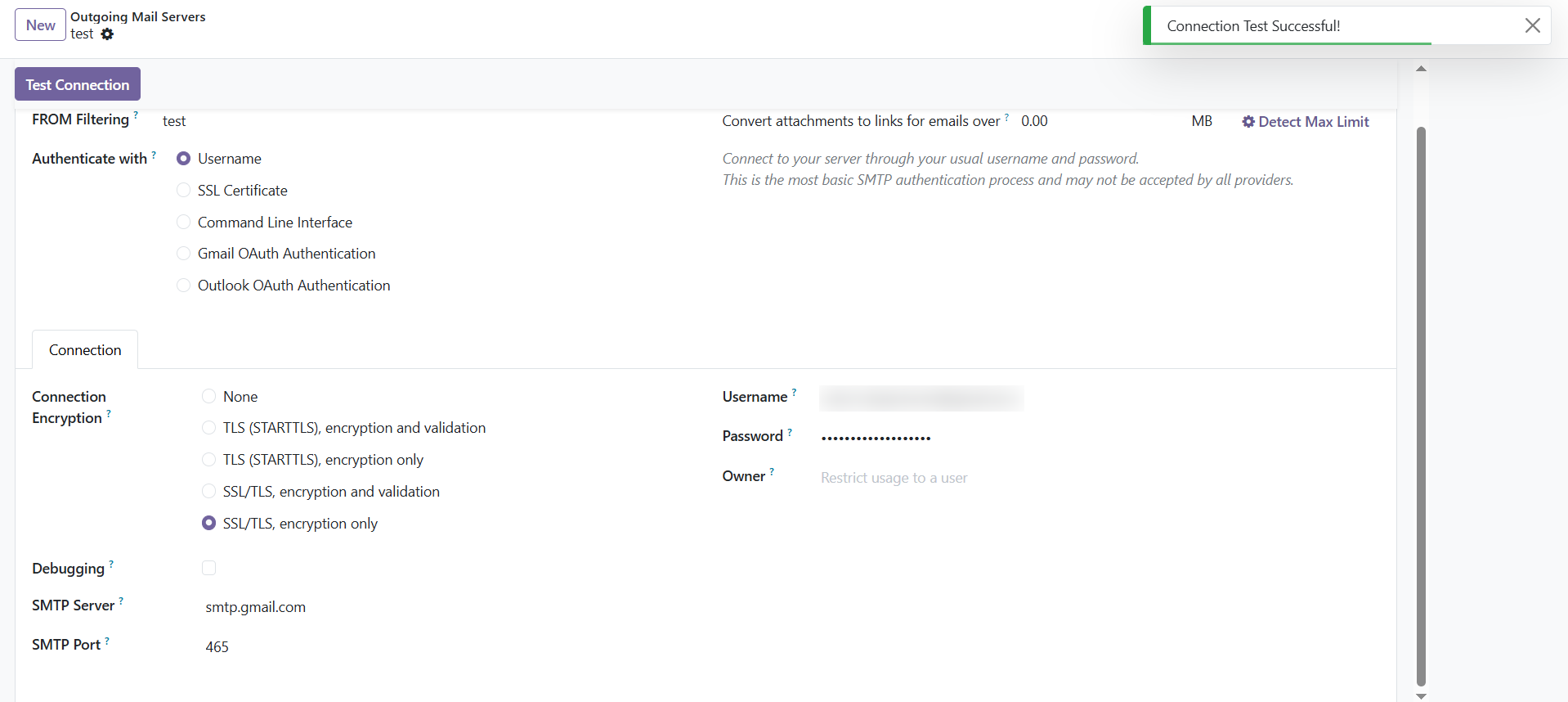 I am trying to configure the Outgoing Mail Server in Odoo using Oracle Cloud Infrastructure (OCI) Email Delivery, but I am unable to connect.