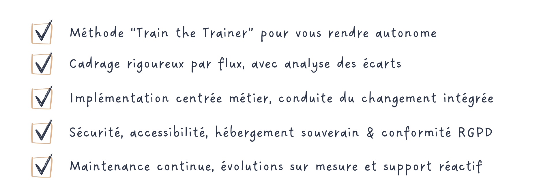 Tout au long du projet, les parties prenantes sont formées, impliquées et responsabilisées, afin de garantir une prise en main simple, rapide et durable de l’outil.