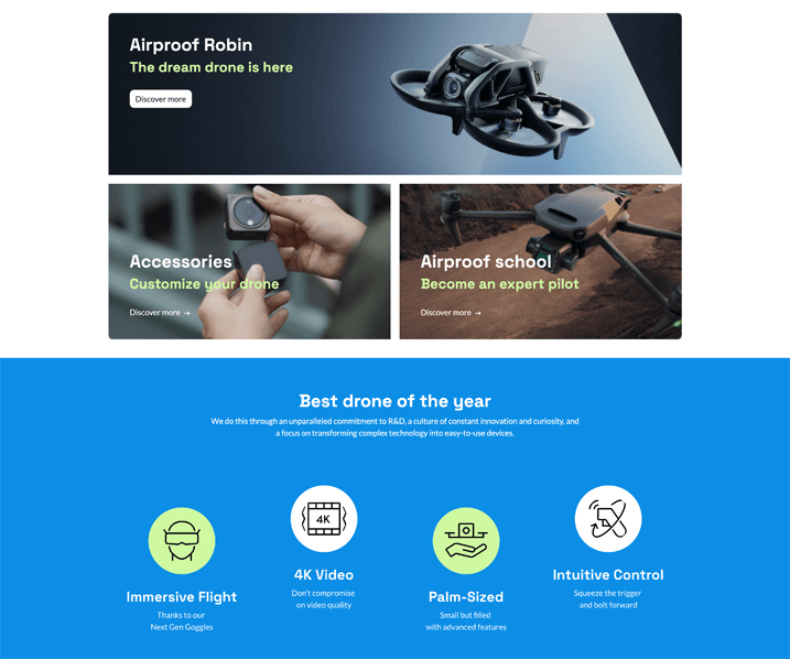 Based on the Airproof design, add the following elements to the homepage :