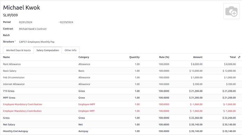 Salary Structure Type: set as CAP57: Hong Kong Employee.