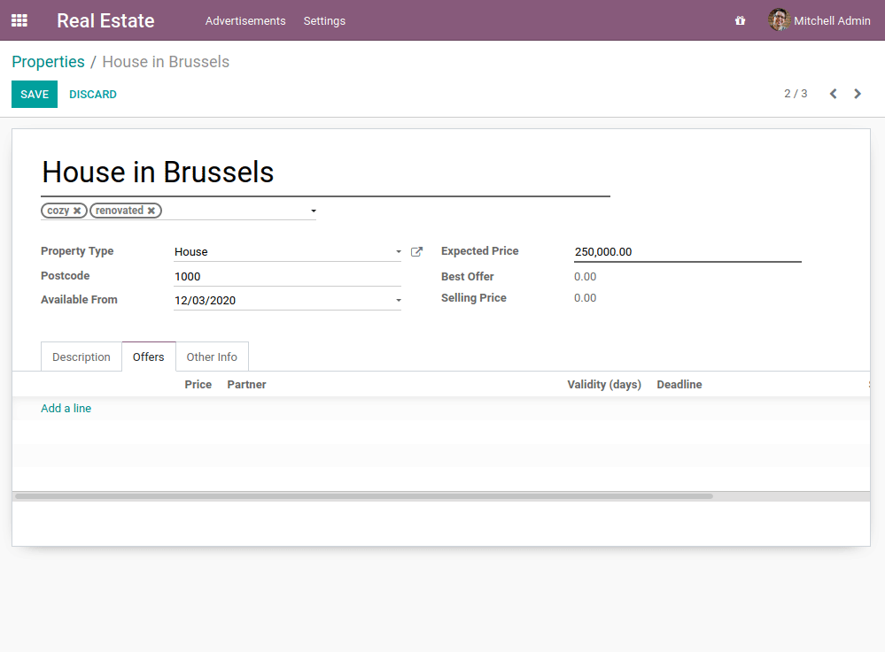 • In the property offer model, the validity date should be computed and can be updated: