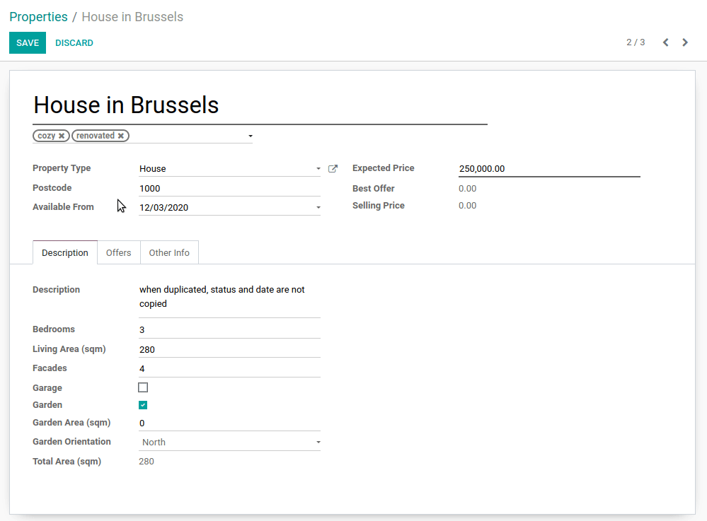 best_pricefield toestate.property. It is defined as the highest (i.e. maximum) of the offers”price.Add the field to the form view as depicted in the first image of this section’s Goal.