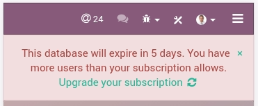 If you have more users in your local database than provisionned in your Odoo Enterprise subscription, you may encounter this message: