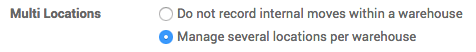 In order to be able to create a new warehouse, you must allow the system to manage multiple locations. In the Inventory module, open the menu . In the Location & Warehouse section, tick the Manage several locations per warehouse box, then click on apply.