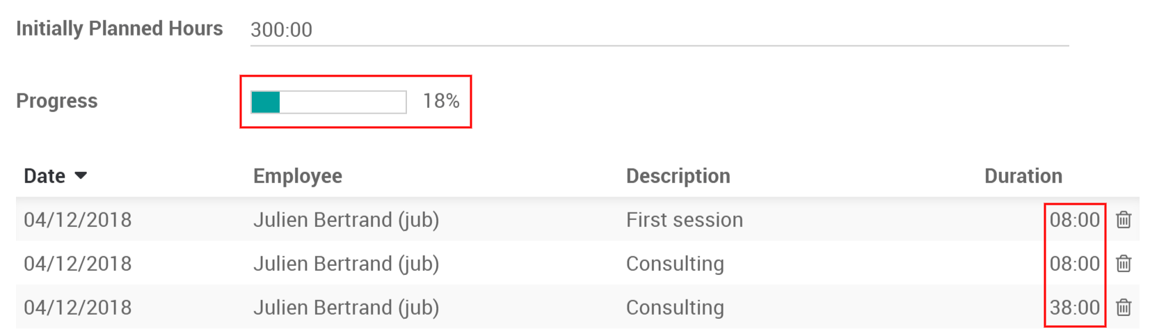 Under timesheets, you can assign who works on it. You can or they can add how many hours they worked on the project so far.