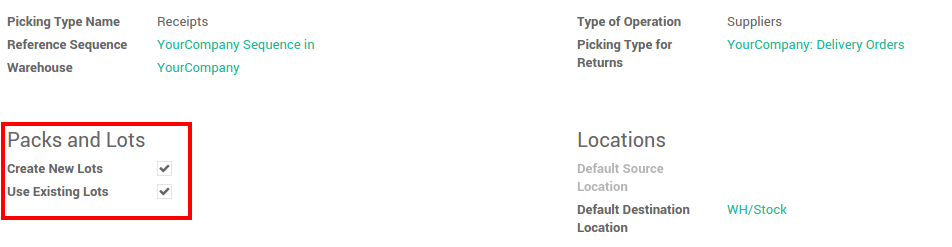 Para cada tipo (recibos, transferencias internas, entregas,...) puede configurar si puede crear nuevos números de lote o solo usar los números de lote existentes.