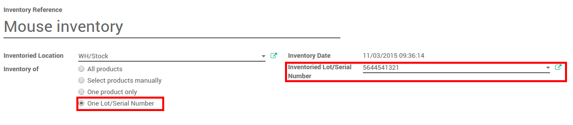 También puede hacer el inventario de solo un lote. En este caso, deberá llenar el Número de Lote. También puede crear un lote desde aquí. Solo escriba el número, una ventana aparecerá para vincular el número a un producto.