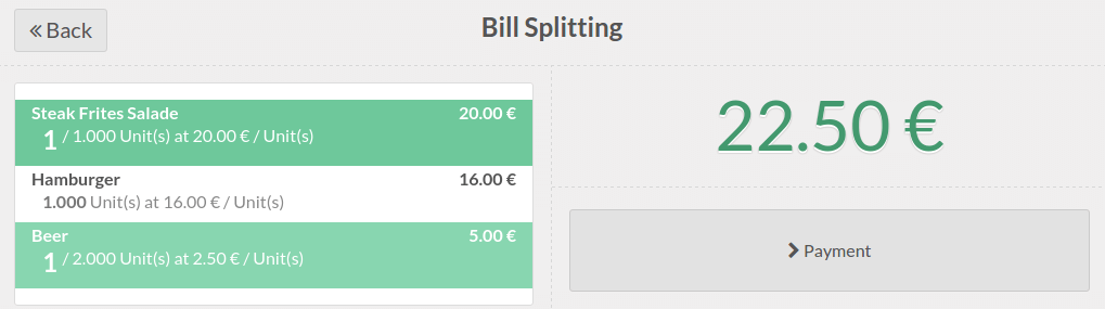 Selecteer de producten die de eerste klant wilt betalen en klik vervolgens op Betaling