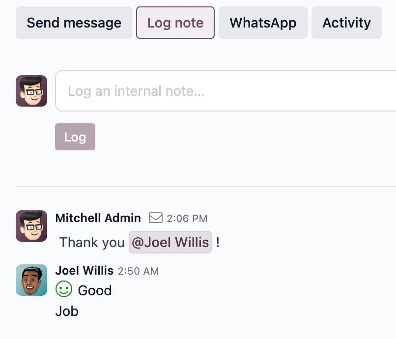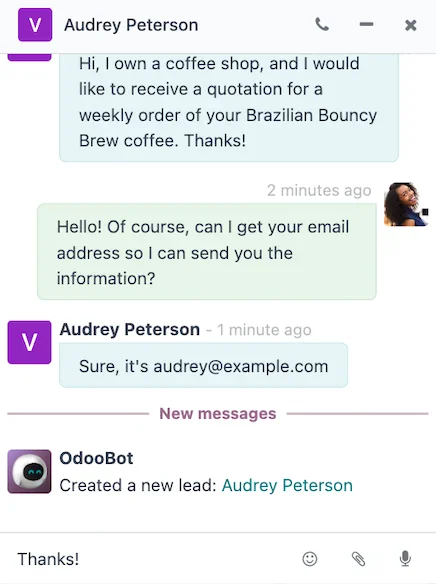 Odoo brings whole companies together with its powerful collaboration features and full data integration. Users can chat directly on any screen, tag teammates, share files, images, and links, as well as plan, assign, and track actions.