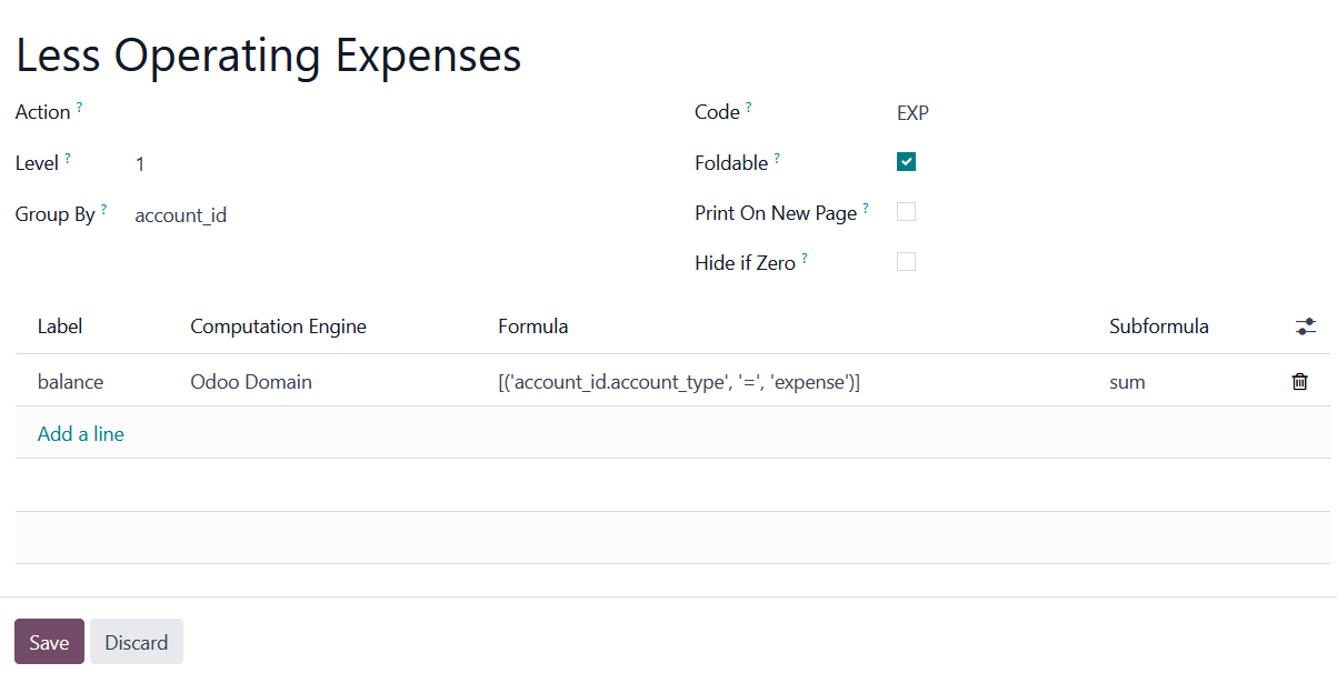 I would like to customize the Profit and Loss report format, specifically under “Less Operating Expenses.”