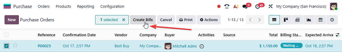 Another point is that with exception of very small organization the vendor bill are sent to the accounting office or are left to logistic and not sent to buyer. So, the upload vendor bill button is not where it is needed.