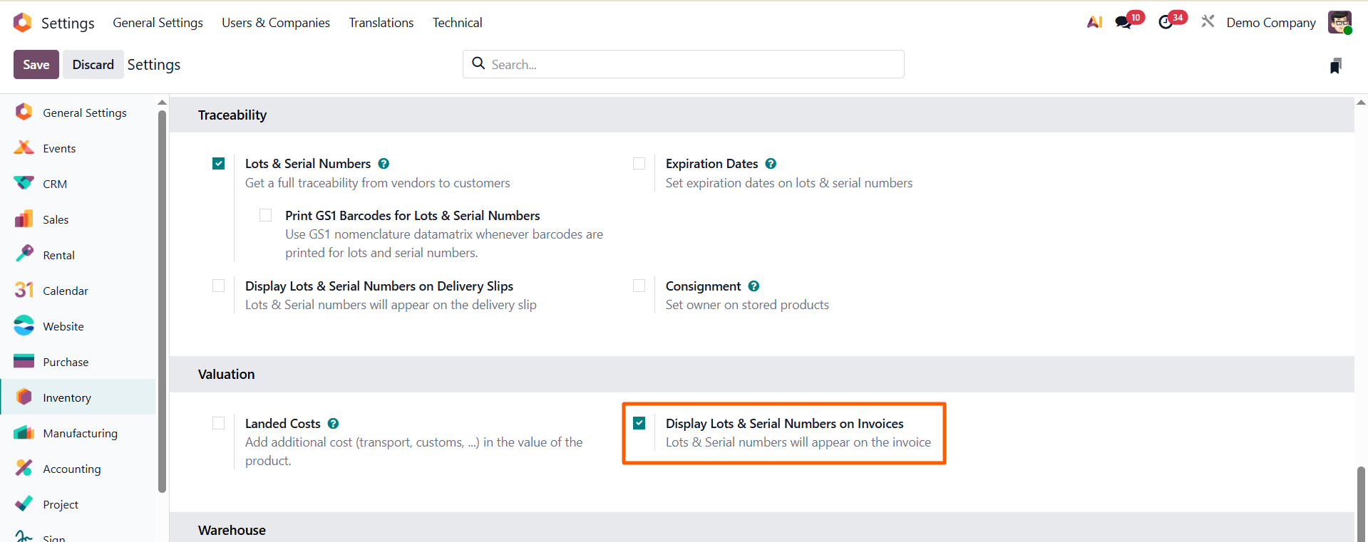 I enabled the option “Display Lots & Serial Numbers on Invoices,” but they still aren’t appearing.