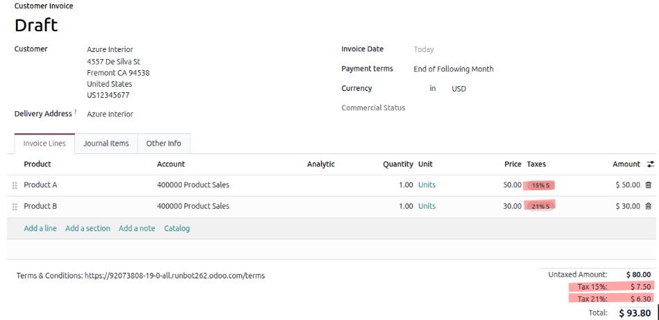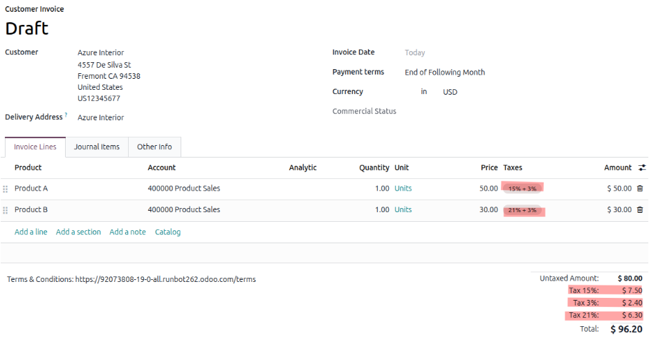 We’d like to add a fiscal position that adds the new tax on top of the different default tax.So after applying the fiscal position, we would like to see the following: