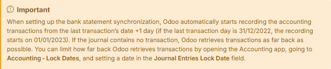 How can I ensure that my bank transactions are only imported starting from a specific date, for example November 1, 2025?
