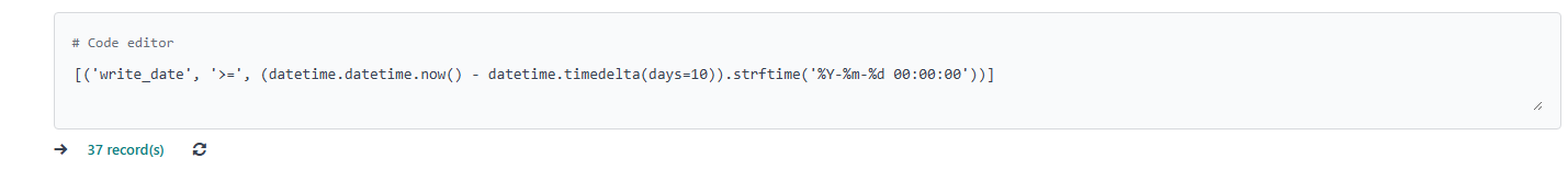 domain="[('write_date', '>=', (context_today() - datetime.timedelta(days=10)).strftime('%Y-%m-%d'))]"/>