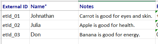 Please help, which field do I need to use to import in notes/remarks?