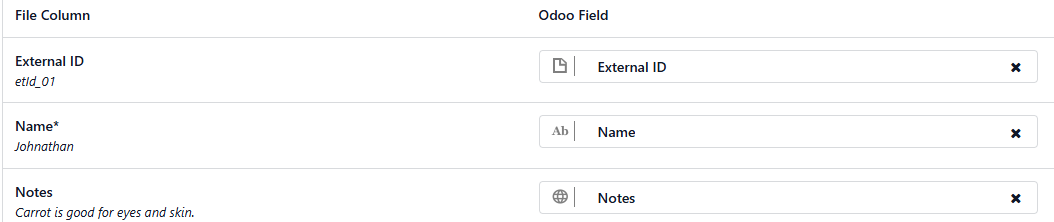 I tired the Odoo Field "Notes", "Users / Notes", "Contact / Notes", etc. All give me this "The file contains blocking errors (see below)" error.