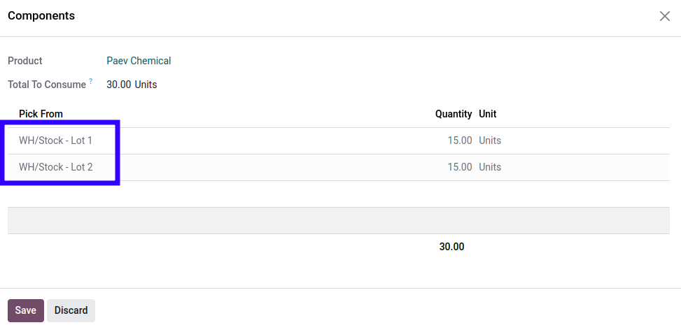 Clientus: We are running out of space to store all the lots of Paev Chemical. We have many half empty barrels from different lots that we should combine but we need to maintain tracability of where these lots came from.