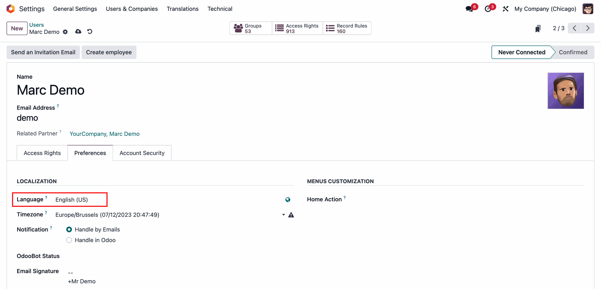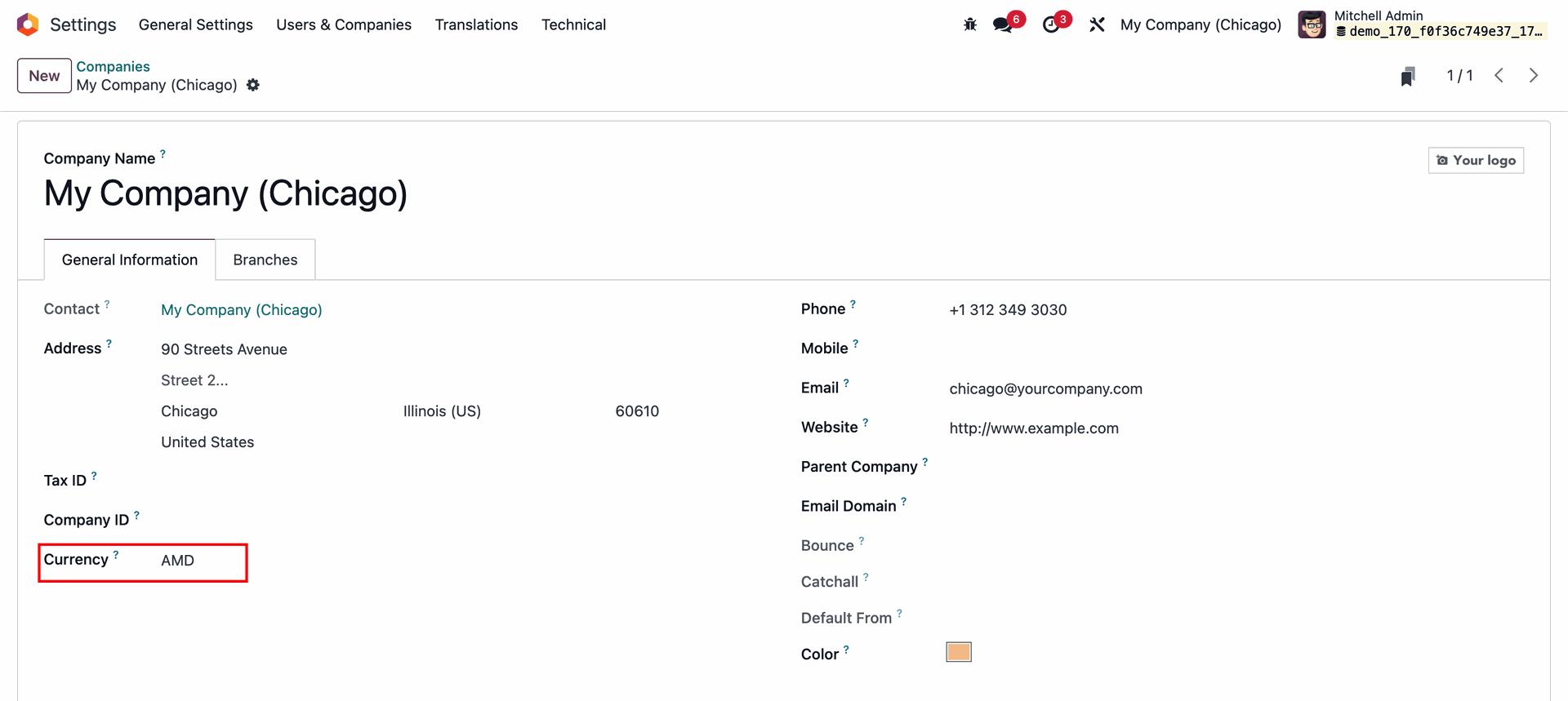 Is there a way to specify the language and currency for Development builds on Odoo.sh
