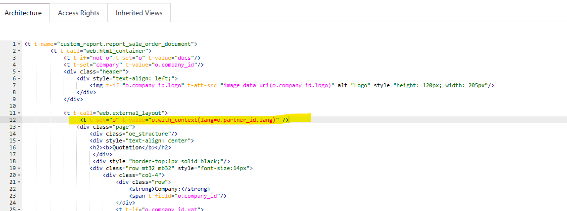 <t t-call="web.external_layout"> <t t-set="o" t-value="o.with_context(lang=o.partner_id.lang)" /><!-- Your remaining report content goes here --> </t>