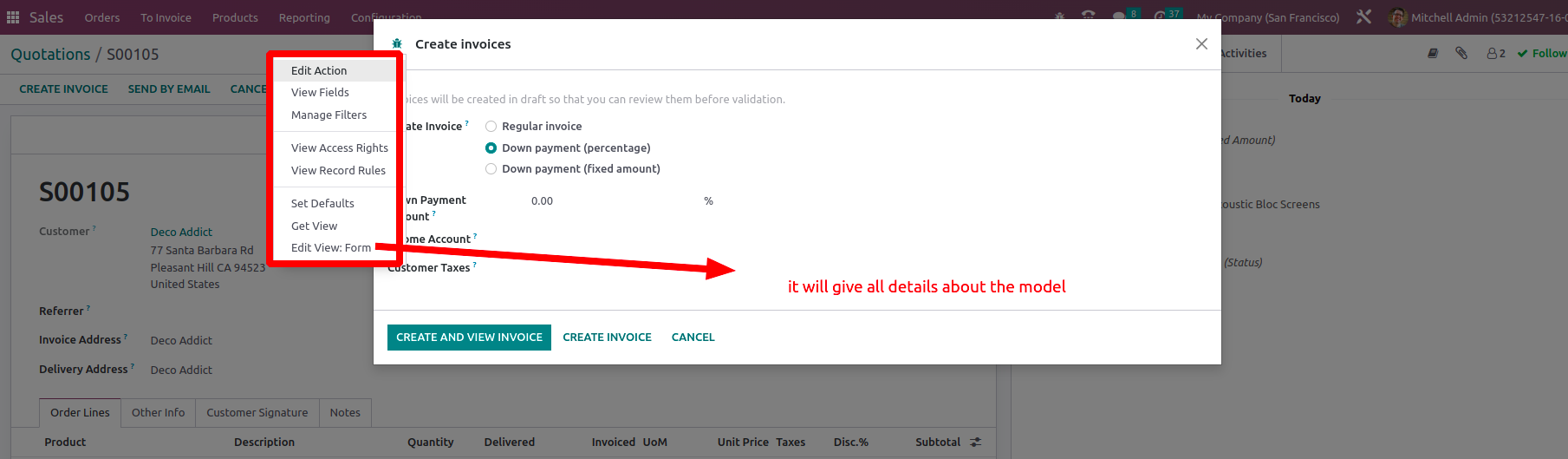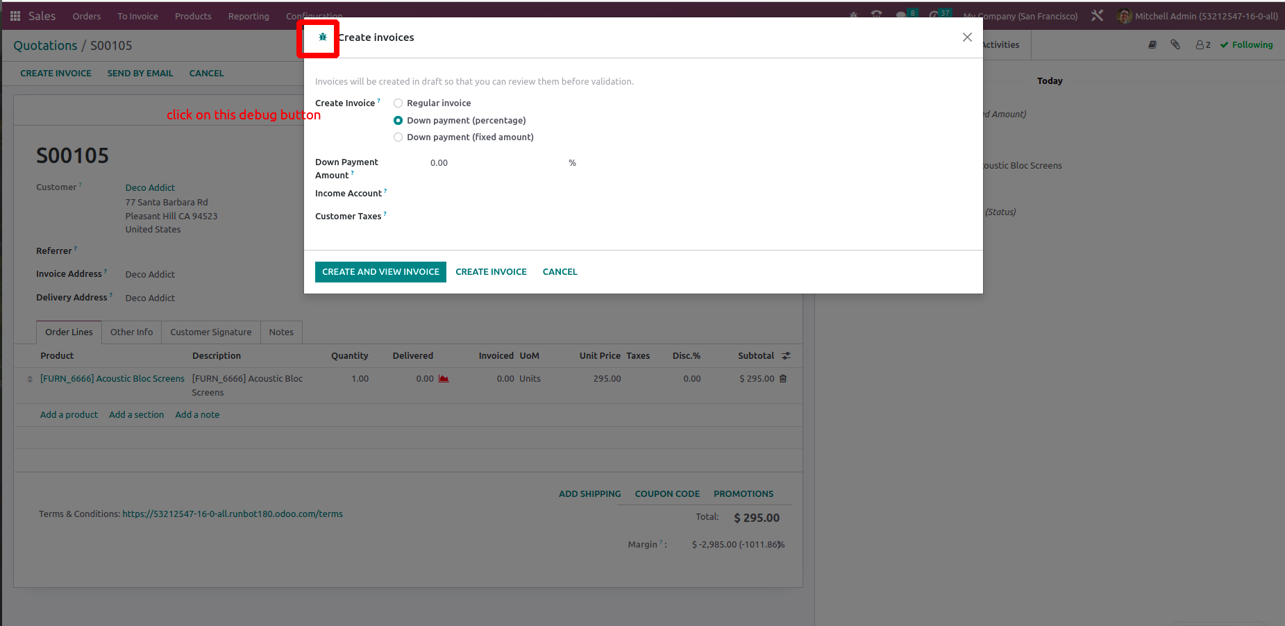 When opening a wizard there is the debugging button we can click on that button and it will give more details about the action