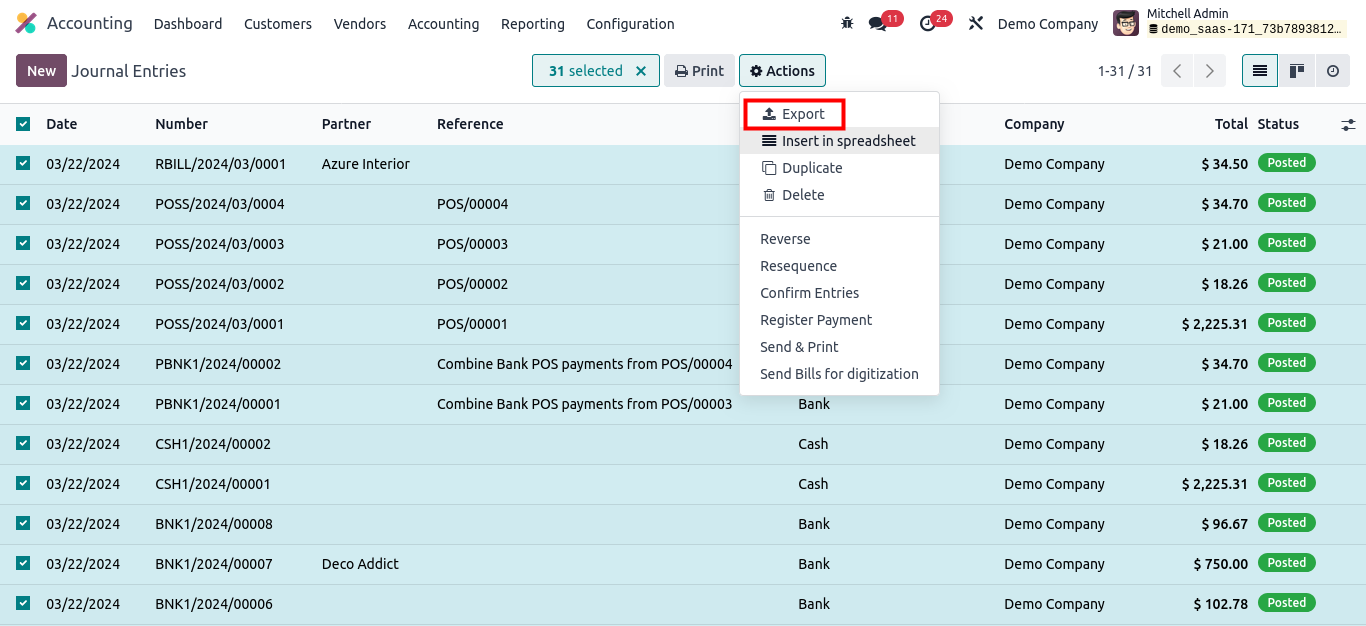 2. Export data