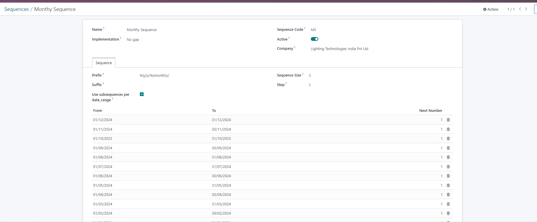 For example invoice sequences should be like below: