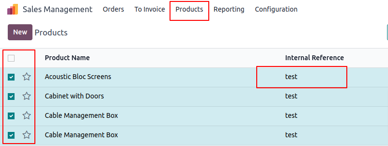 J'ai une liste de produits et je souhaite modifier un champ spécifique pour tous les produits en une seule action, sans avoir à importer un fichier Excel avec les modifications. Comment puis-je faire cela dans Odoo ?