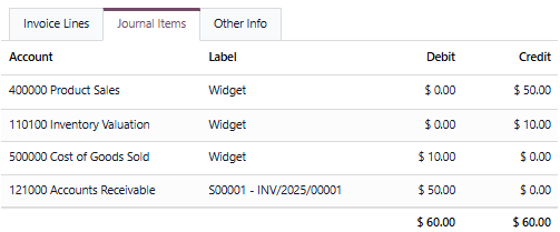 They are recorded when the Customer Invoice is posted.  We would suggest reviewing the Valuation Cheat Sheet at https://www.odoo.com/documentation/19.0/applications/inventory_and_mrp/inventory/inventory_valuation/cheat_sheet.html to understand the expected Journal Entries with each transaction, and reviewing the workflow at the end of this post to see a worked example.