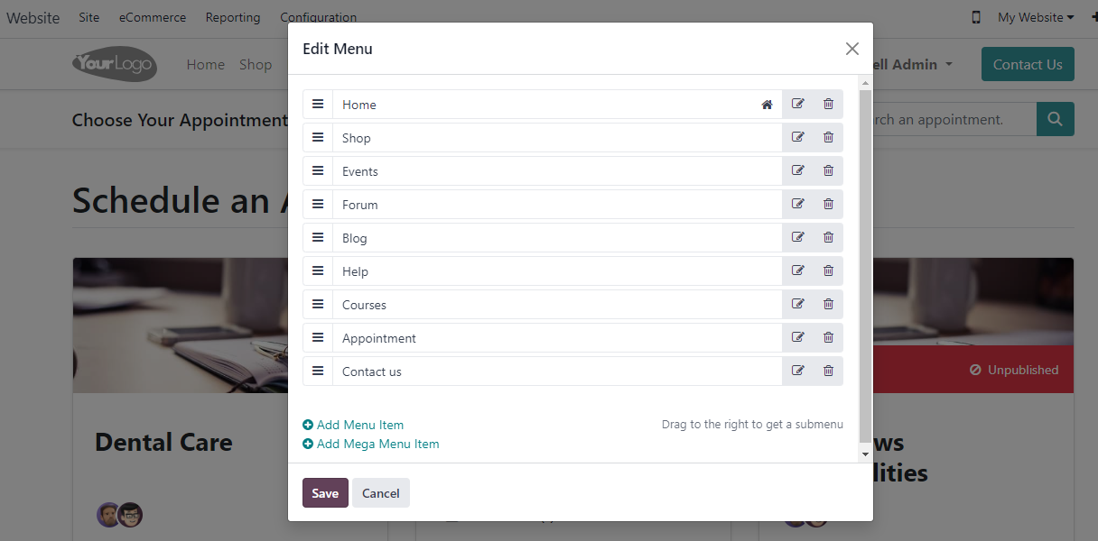 At the beginning of creating my site, I chose the "make an appointment" option but ultimately I no longer want this option.