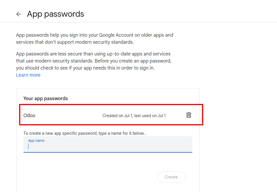 Go to Google Account > Security > App Password > Create App Name as Odoo and Update that Password in the Outgoing mail Server.