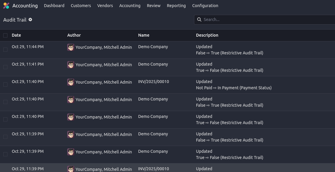 I want to understand the benefits of this setting "Restrictive Audit Trail" in the accounting settings because I tested multiple scenarios when switching ON/OFF and I didn't notice any difference in the report result