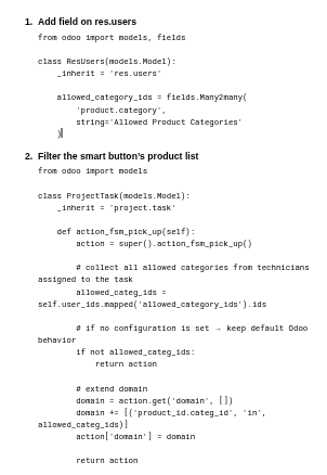 Currently, every deliverable product shows up on the "Products to Pick Up" smart button. I don't want my tech to have to sort through all of that to find what he should be doing. IE. my gutter installer shouldn't have to sort through 2x4's to see how many feet of gutter he should be installing.