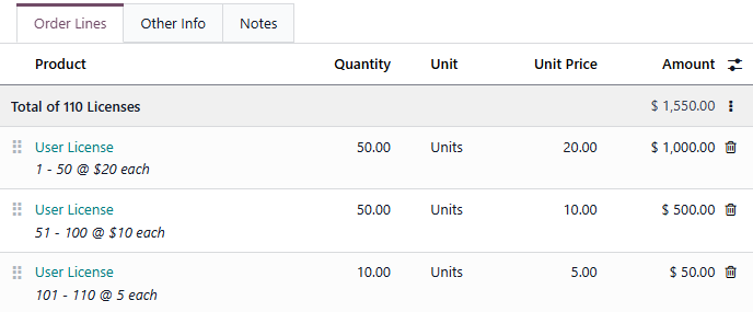 How could I create such a pricing model in Odoo quoting and/or invoicing?