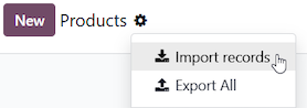 From any Products Menu, click the Import records option: