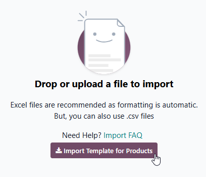 How can I access the template to import my products (name, price, etc.)?