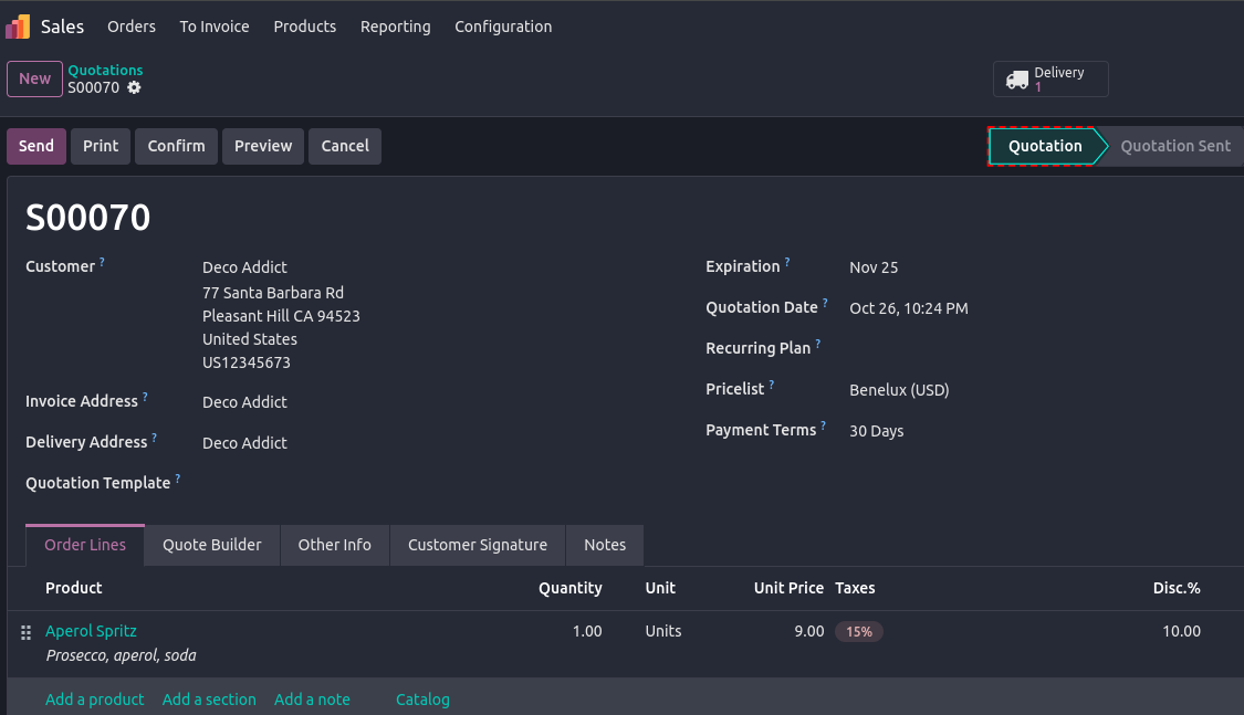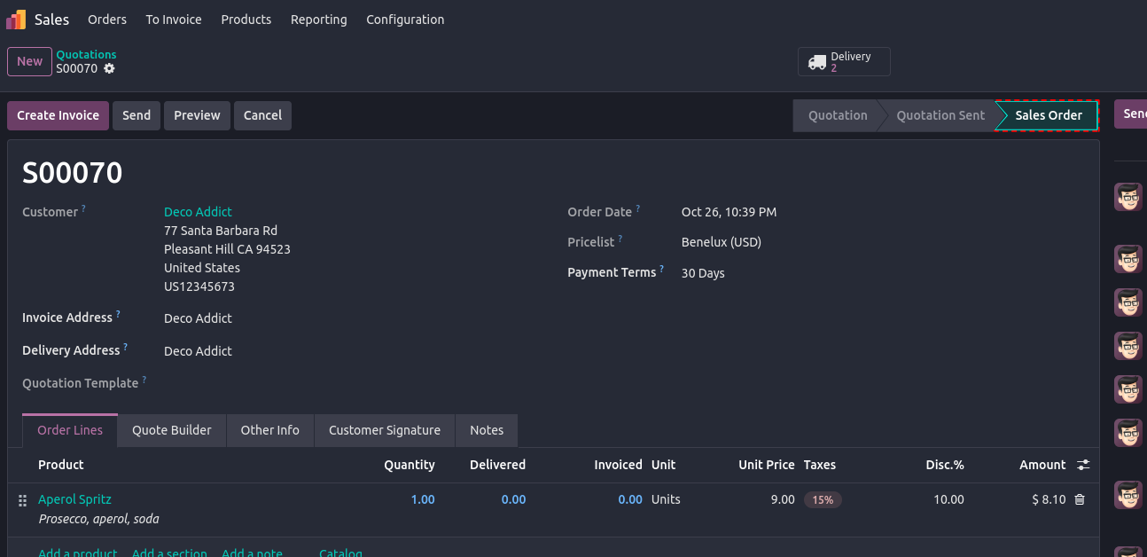 Apply on: Match all of the following rules: Order Status = Sales Order