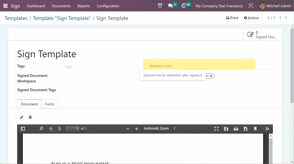 I am using Odoo 16.2. I want to change the dialog that appears after the user signed and then clicks on Validate and Send document.