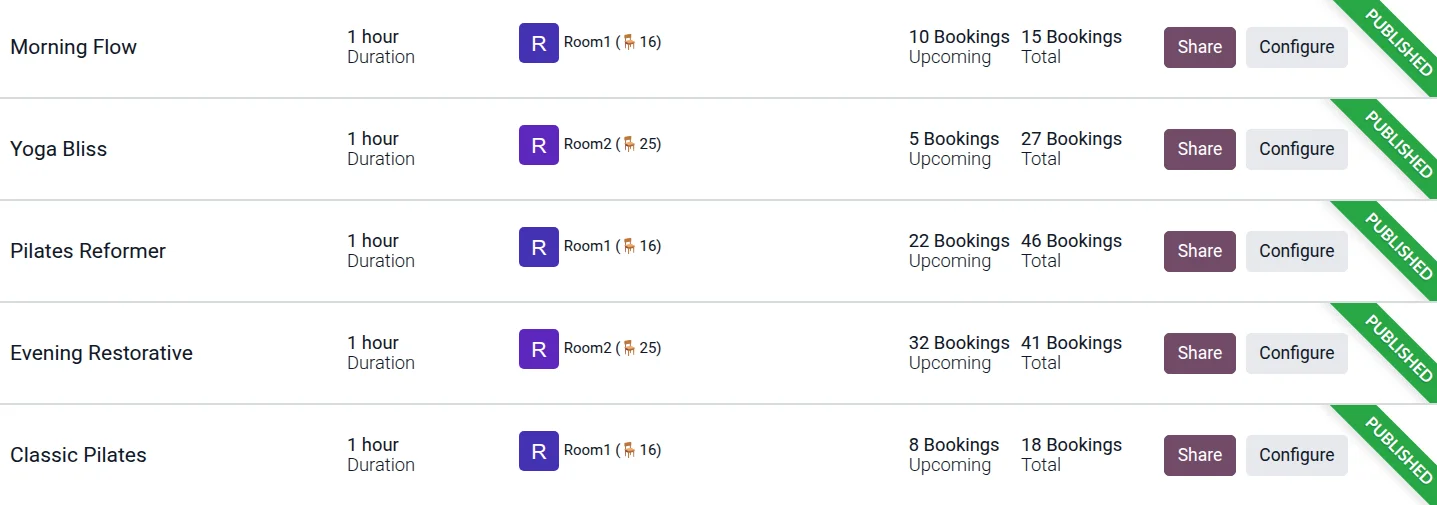 Bookings made easy. The customer portal allows your clients to book classes with a few clicks.