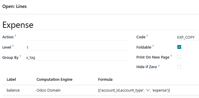 Then, remove grouping by account_id and replace it by your custom field on each report line on the IFRS report (which you can create by duplicating the GAAP one):
