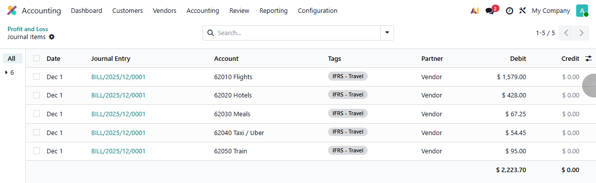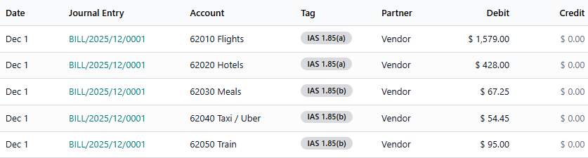 If instead we tag the Accounts so our Journal Items are recorded like this: