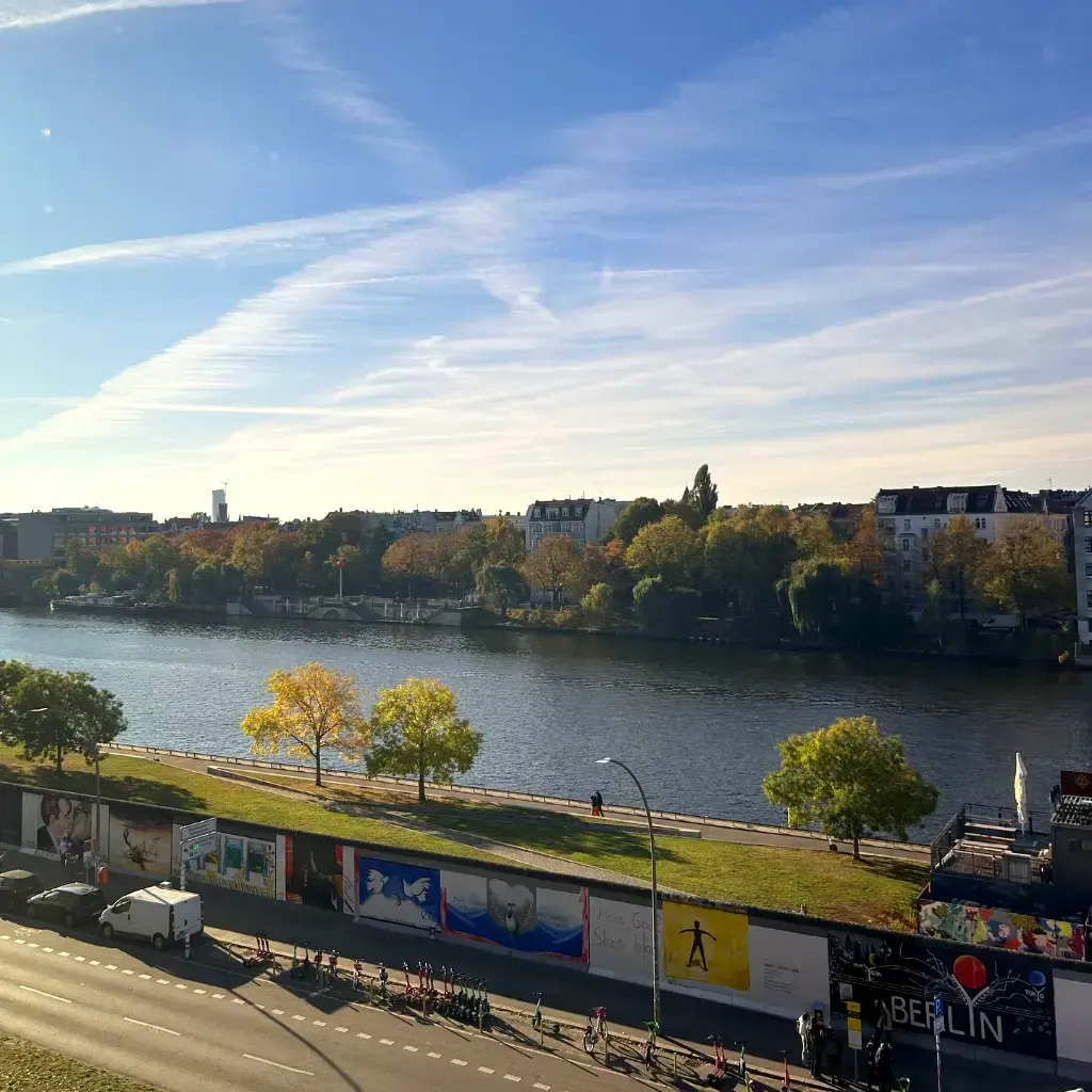 Zentrales Office mit Spreeblick, dazu Snacks, Müsli, und Spaßgetränke, sowie einen Zuschuss zu deinem Mittagessen.