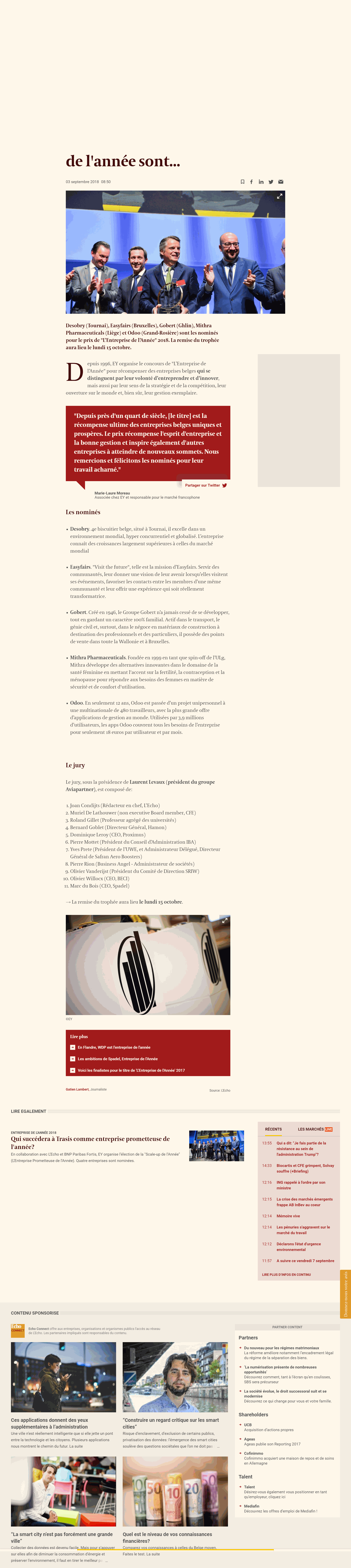 Remis pour la première fois, le prix de « L’Entreprise prometteuse de l’année » a été décerné à OpenERP, une entreprise basée à Ramilles.